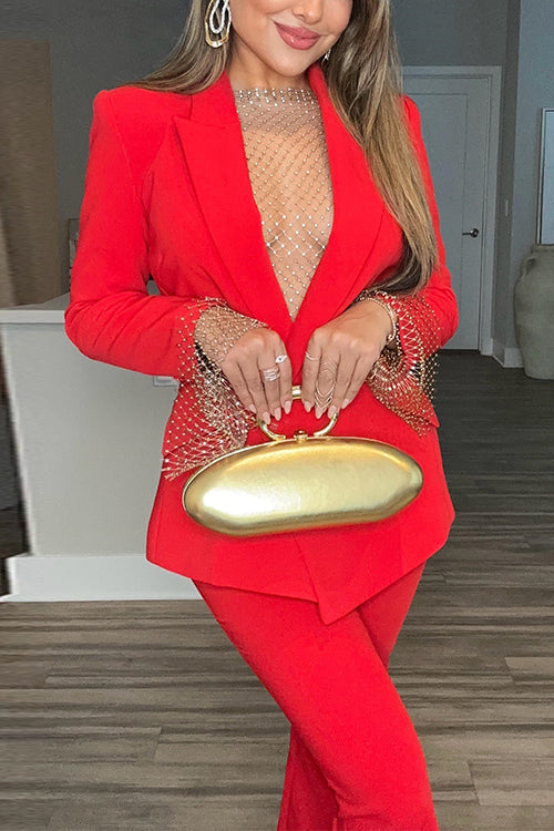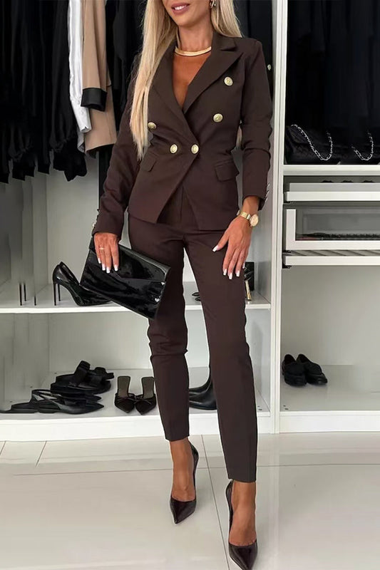 One Button Pocketed Blazer and Straight Leg Pants Power Suit Set