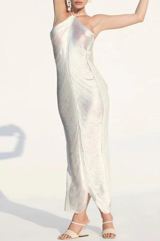 Vestidos de vestir sin mangas con cuello halter y espalda descubierta con borlas sólidas sexy (3 colores)