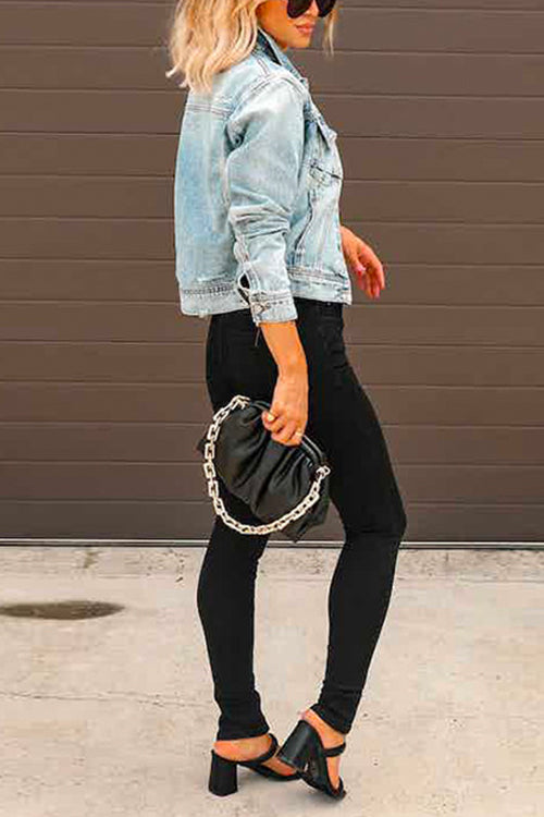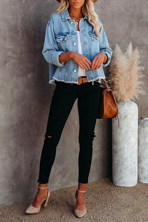 Chaqueta vaquera corta con botones y dobladillo sin rematar Rosiedress