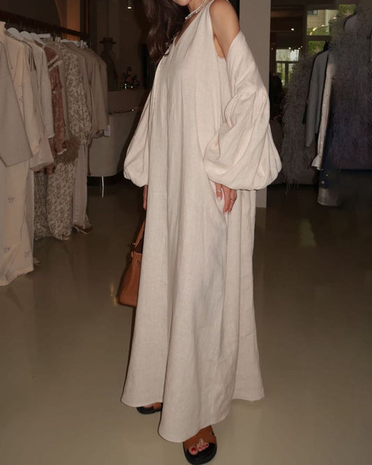 Lässiges, einfarbiges Vall-Kleid und Cardigan-Jacke, zweiteiliges Set