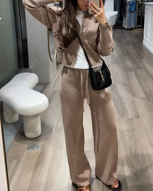 Lässiges, bequemes, einfarbiges zweiteiliges Set aus Strickjacke und Hose