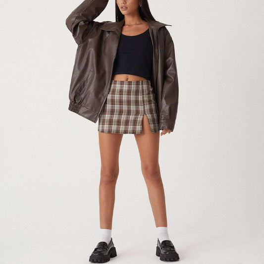 Sofia Amoretti Plaid Mini Shirt Dress with Long Sleeves