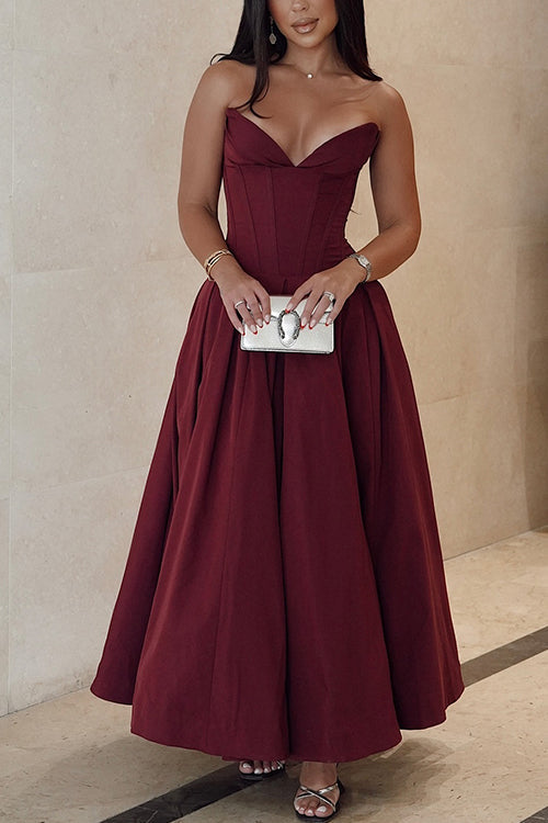 V Neck Strapless Pocketed Wide Leg Jumpsuit