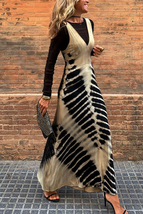 V Neck Sleeveless Tie Dye A-line Maxi Dress