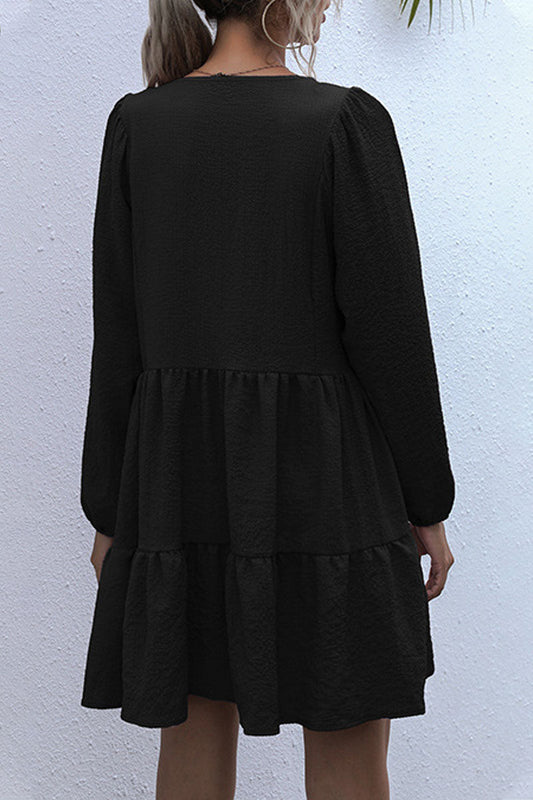 Vestidos de falda de pastel con cuello en V de malla sólida de moda (3 colores)
