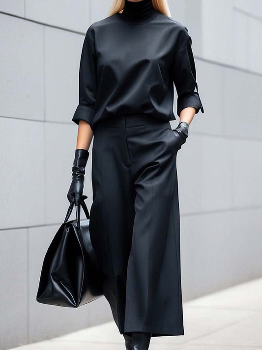 Solid Color Sleeveless Sweater Vest & Wide Leg Pants Sets