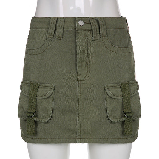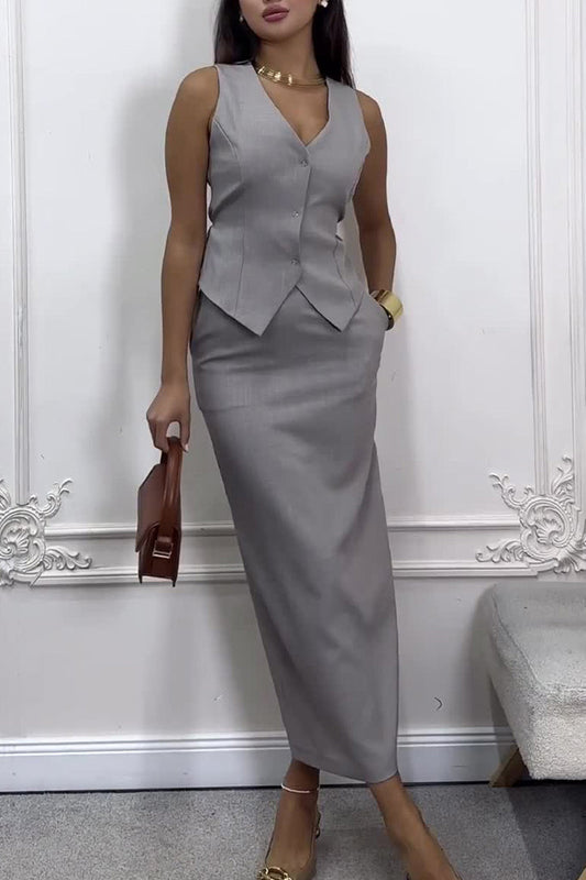 Solid Color Pocket Buttons Strap Design V Neck Sleeveless Two Pieces