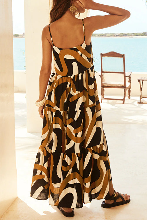 Robe longue camisole à volants et imprimé expresso