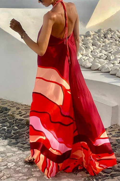 Robe longue de vacances à imprimé licou et dos nu
