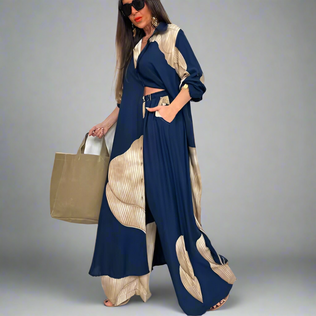 Ensemble deux pièces haut mi-long imprimé et pantalon large