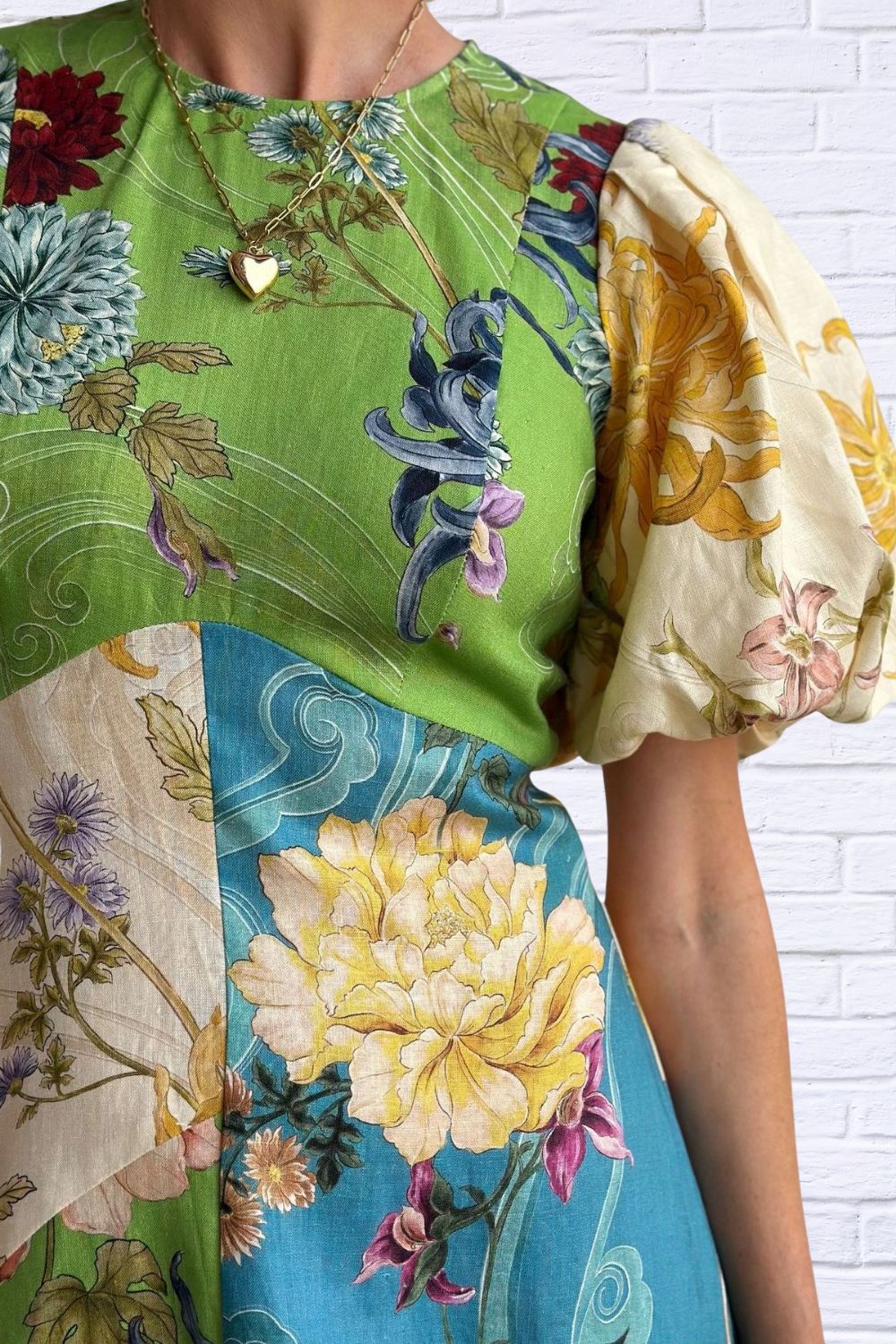 Printed Round Neck Puff Sleeve Dress