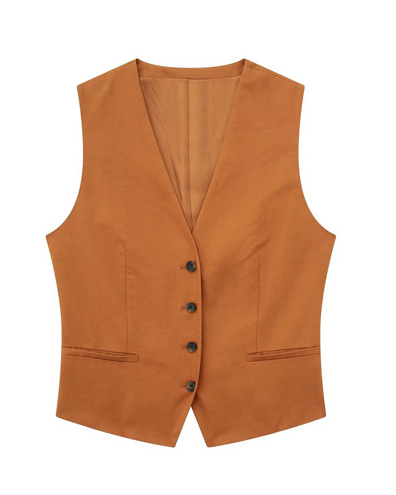 Ensemble deux pièces haut court sans manches à col en V et jupe évasée mi-longue