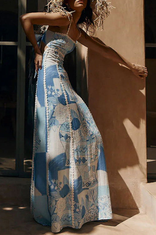 Robes sexy à imprimé dégradé, dos nu, volants contrastés, col en V