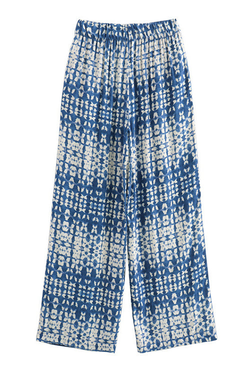 Pantalon imprimé à jambe large avec taille élastique et cordon de serrage