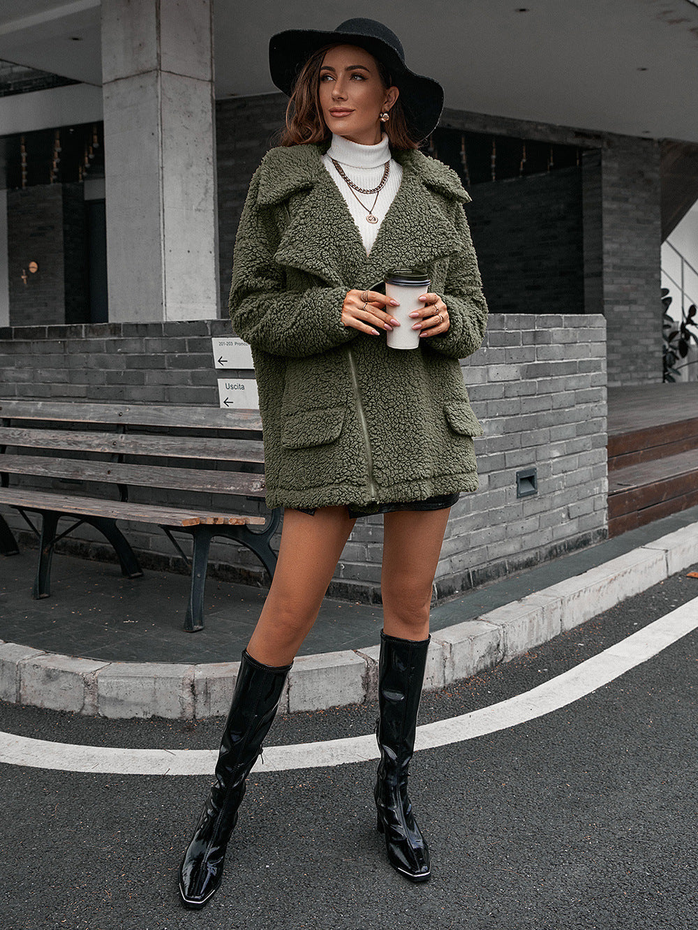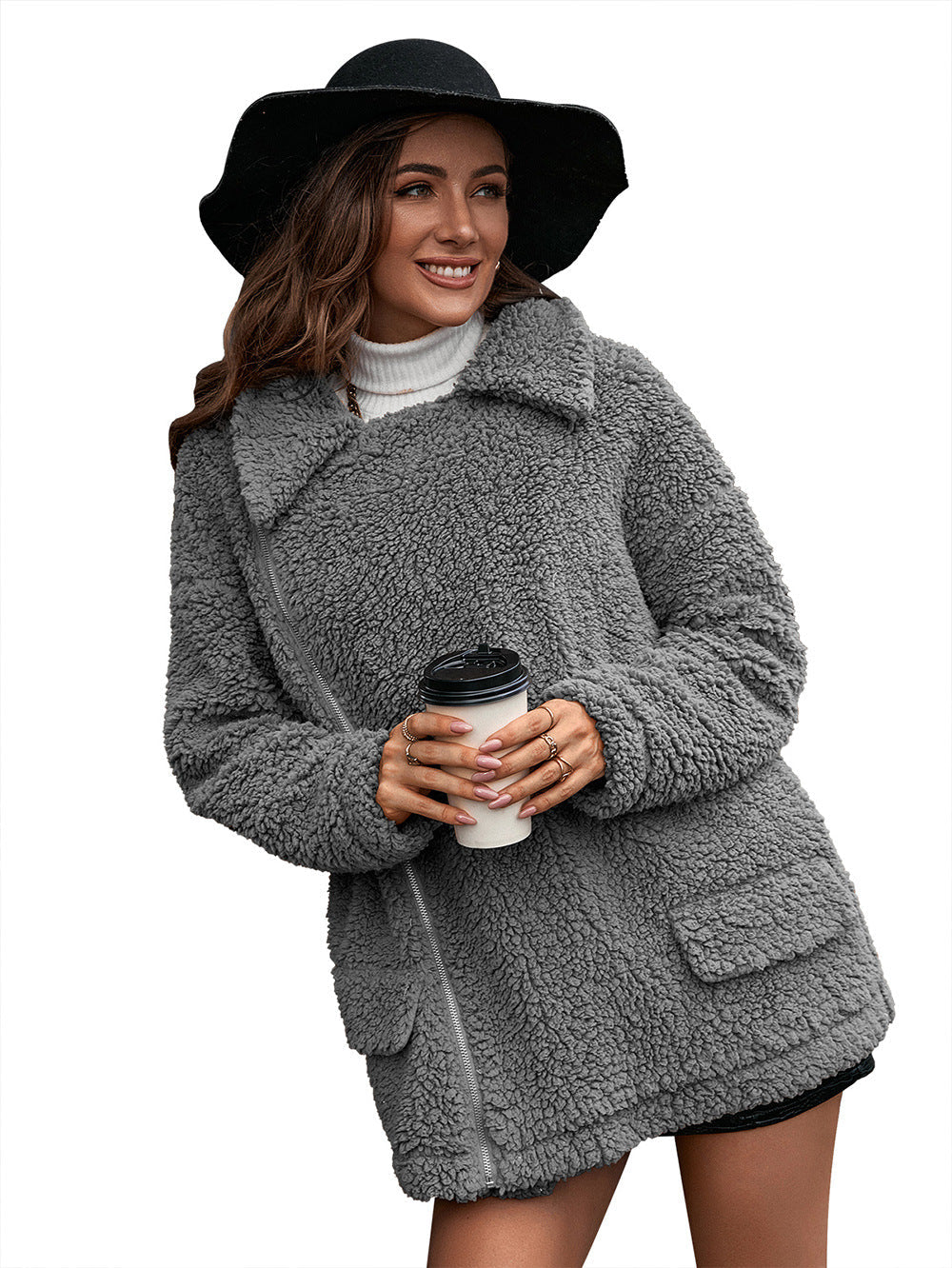 Experience ultimate comfort and style with this casual loose-fitting coat, crafted from thick bubble velvet and featuring a convenient zipper closure. The furry texture and collared design add a touch of luxury, while the lamb wool trench coat construction ensures warmth and coziness. Perfect for any casual outing, this coat combines fashion and functionality effortlessly.