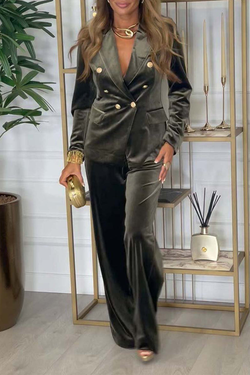 Ensemble deux pièces décontracté à boutons et patchwork en velours avec col rabattu et manches longues (3 couleurs)