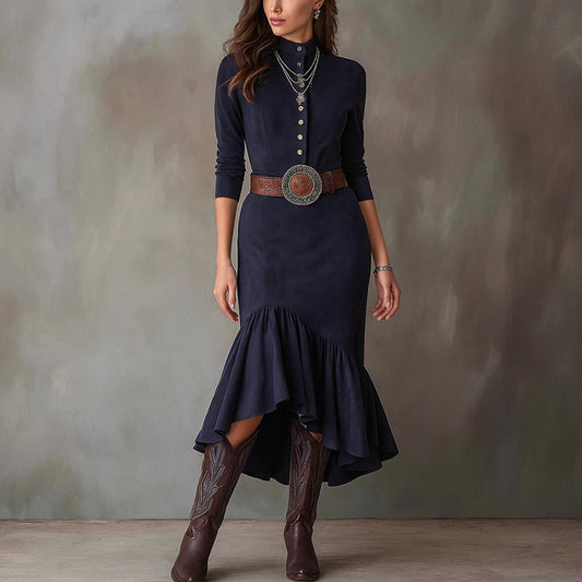 Women’s High-Collar Maxi Dress with Flared Hem