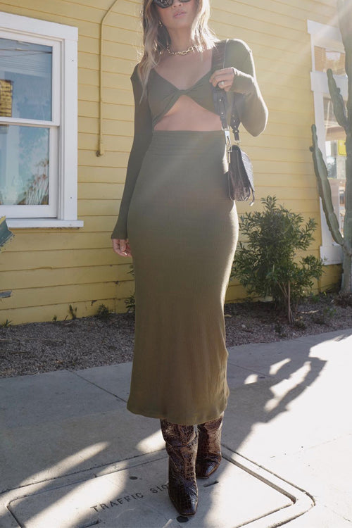 Robe mi-longue à manches longues et découpes dans le dos en sequins