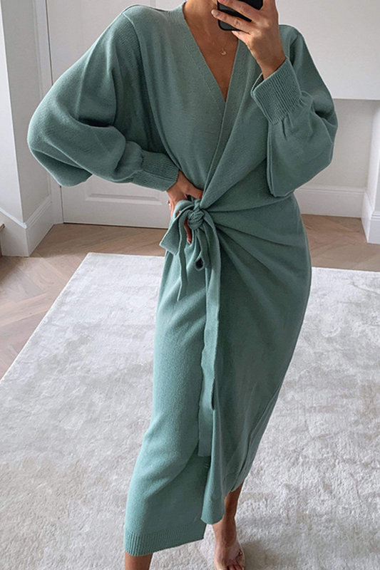Robes décontractées à manches longues et col rond avec boucle unie