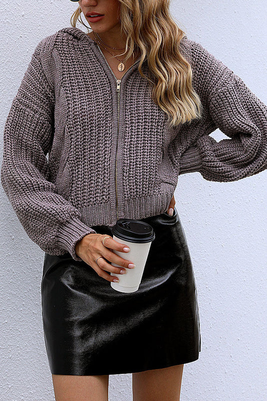 Pull à capuche en tricot à manches longues et col en V