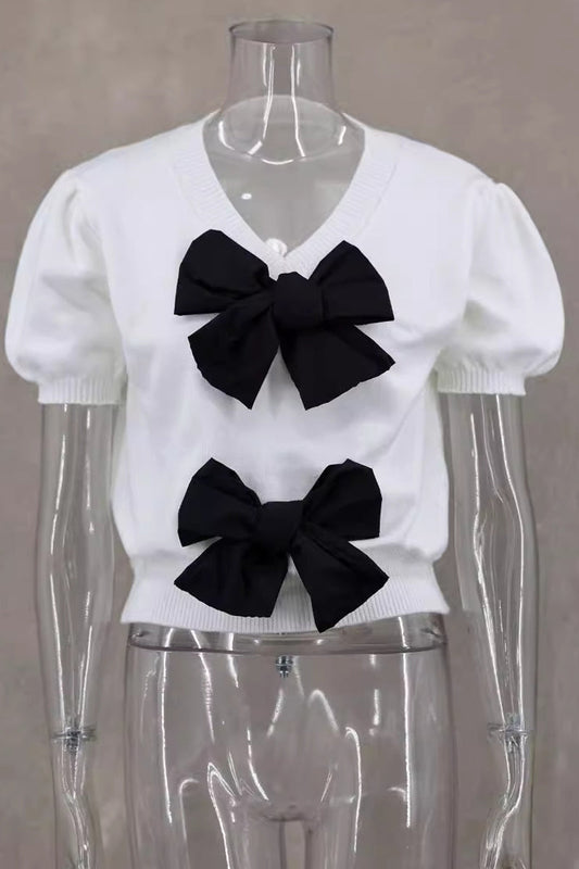 Pull en tricot décoratif à manches courtes et boutons avec motif cerise