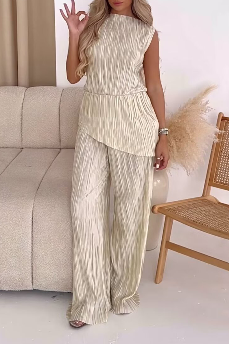 Casual Daily Solid Color Ruched Irregular O Neck Two Pieces