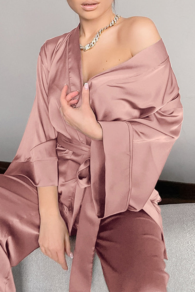Casual Simplicity Solid Bandage V Neck Long Sleeve Two Pieces