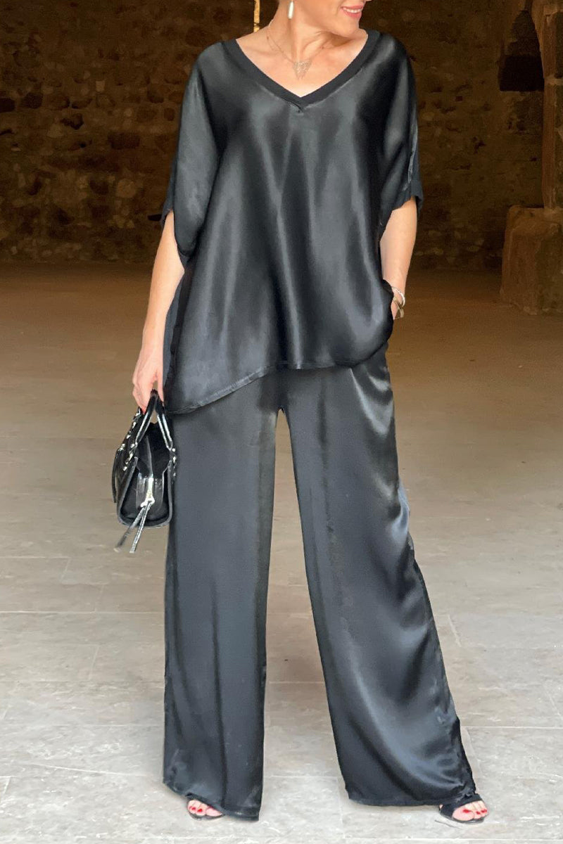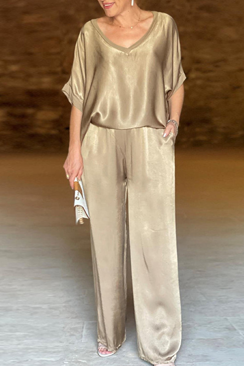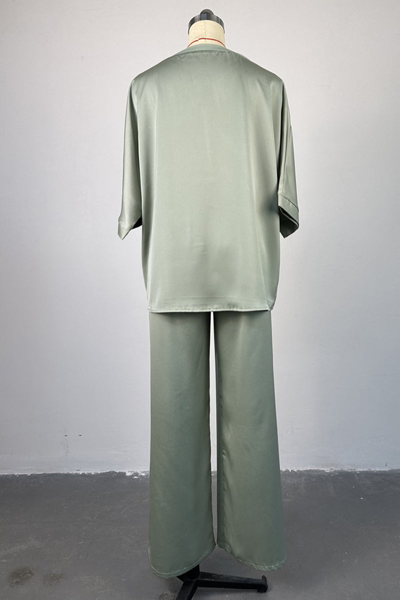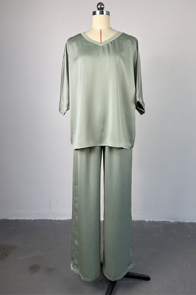 Casual Simplicity Solid Pocket V Neck Three Quarter Two Pieces(3 Colors)