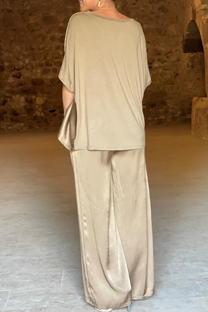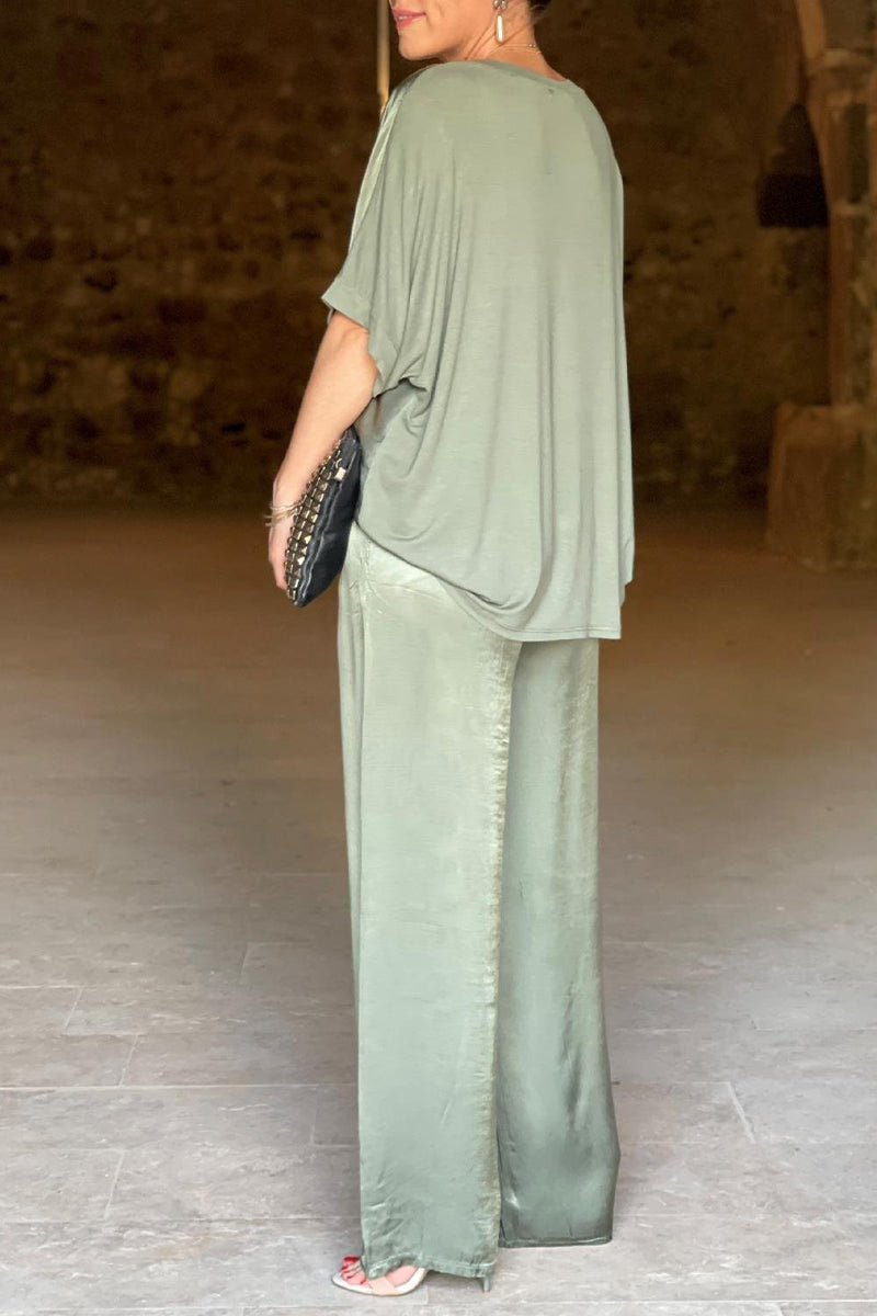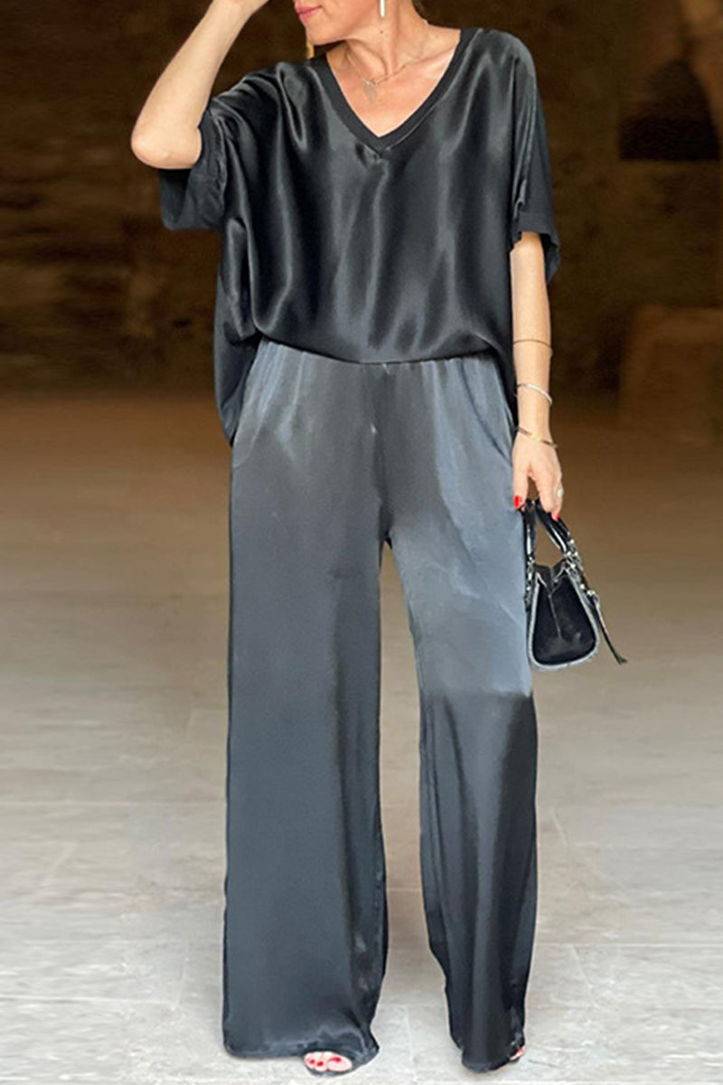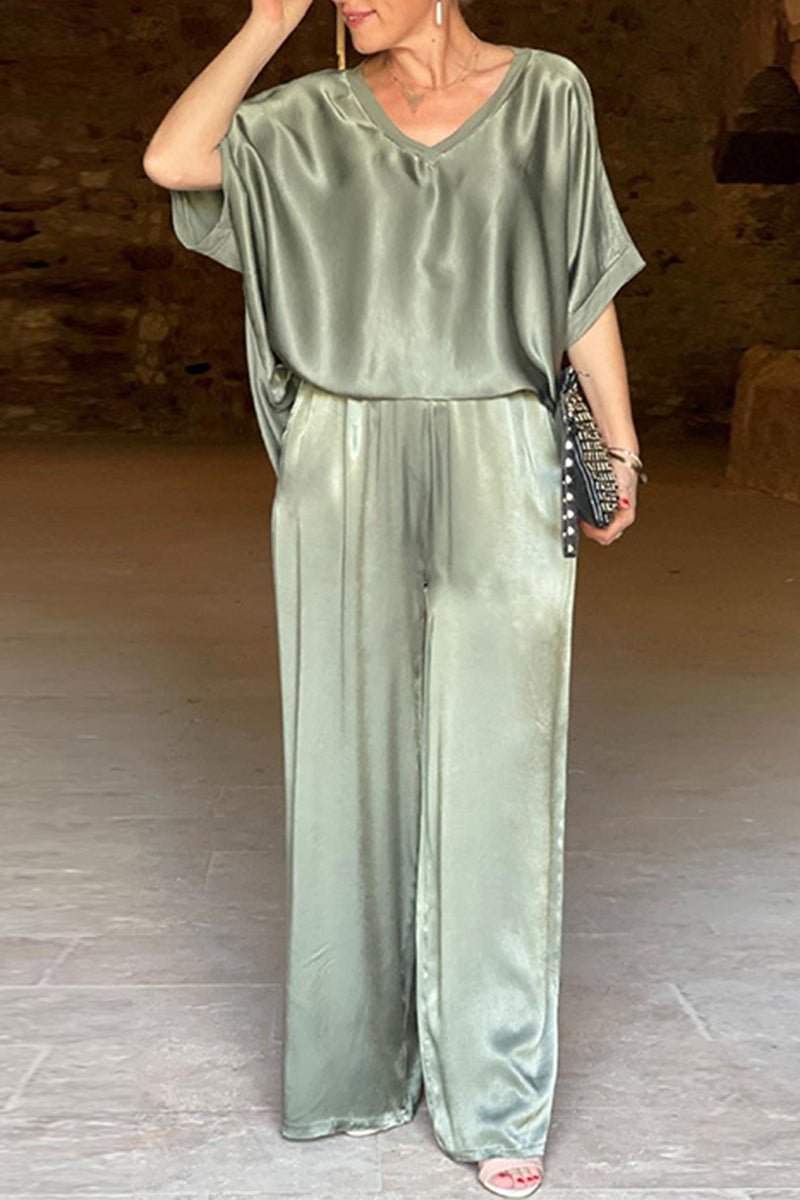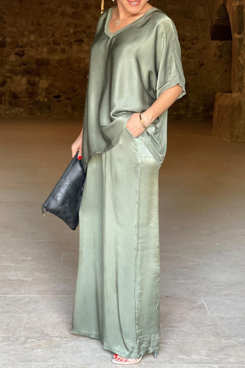 Casual Simplicity Solid Pocket V Neck Three Quarter Two Pieces(3 Colors)