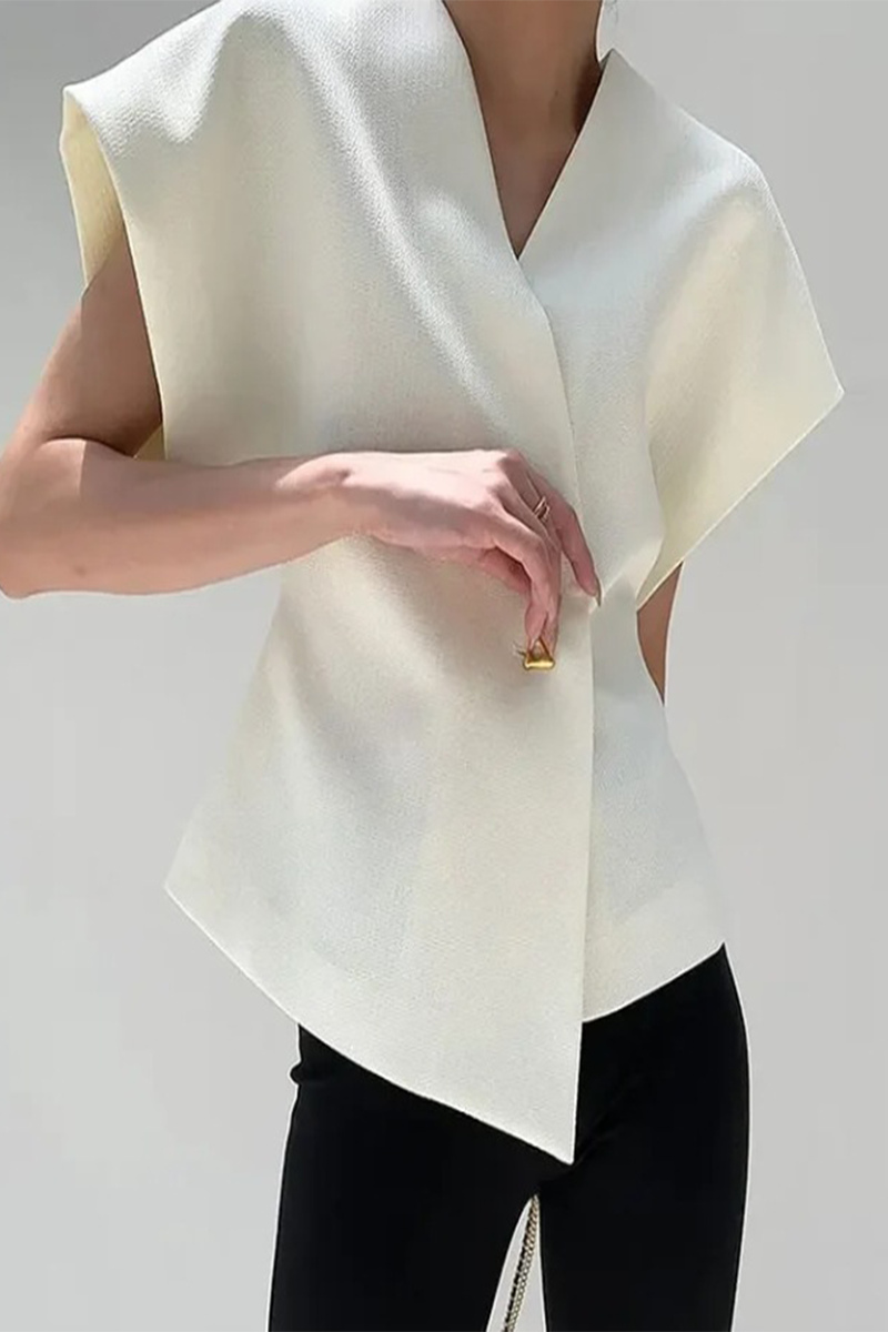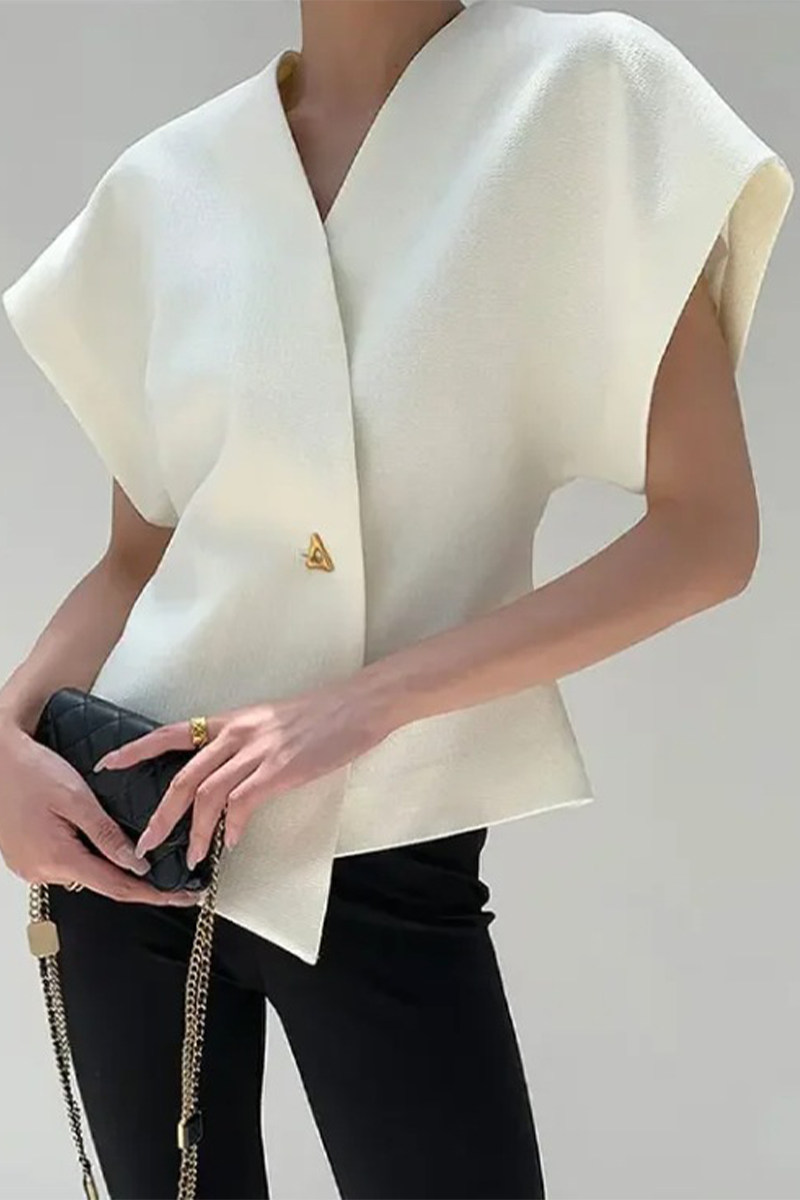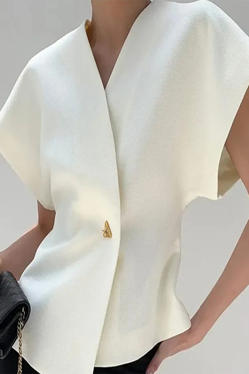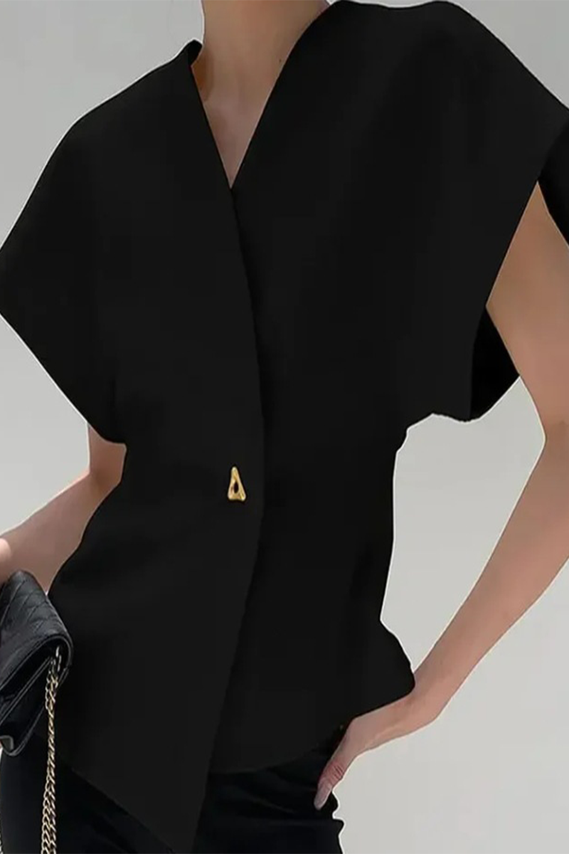 Casual Solid Color Metal Accessories Trim V Neck Tops