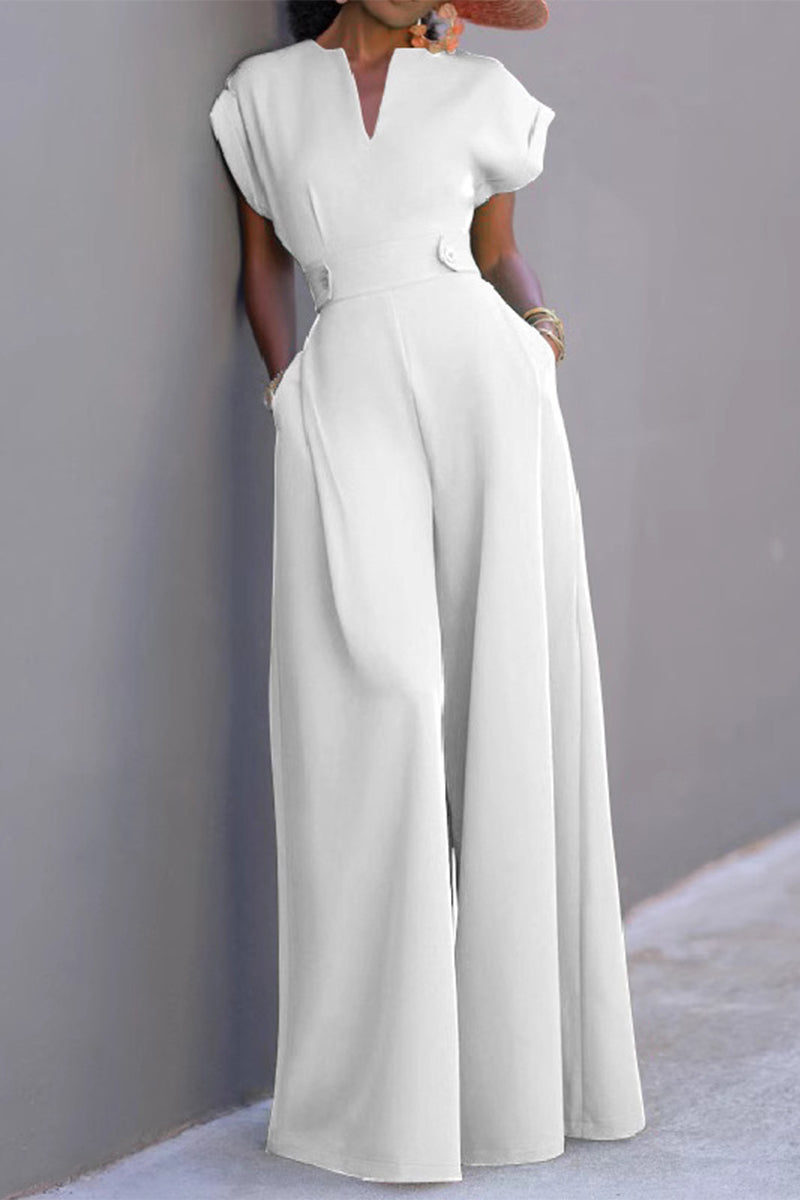 Casual Pocket Patchwork O Neck Loose Jumpsuits(7 Colors)
