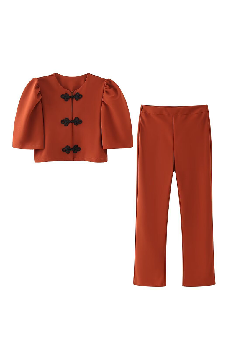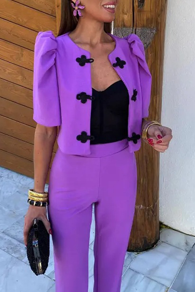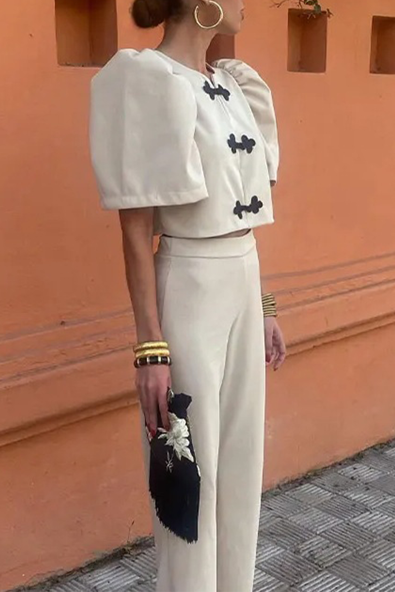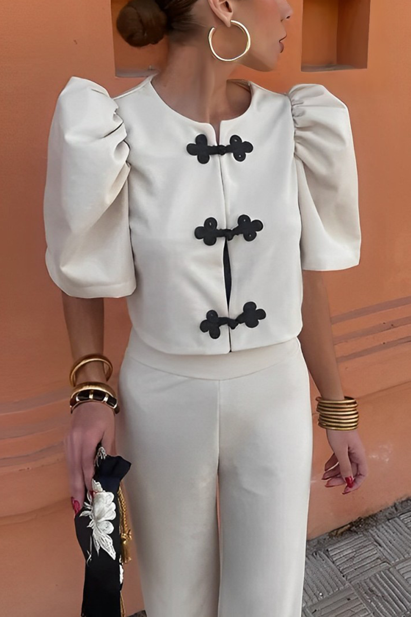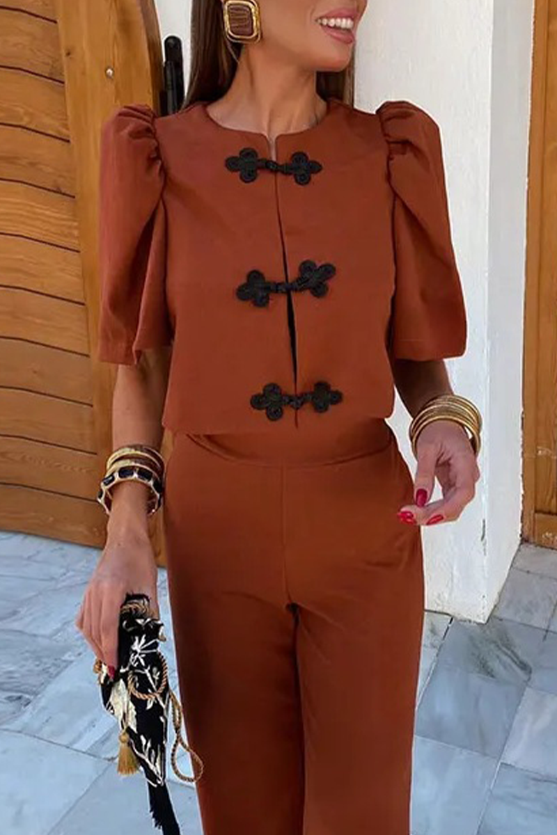 Casual Street Solid Color Buttons Ruched O Neck Half Sleeve Two Pieces(3 Colors)