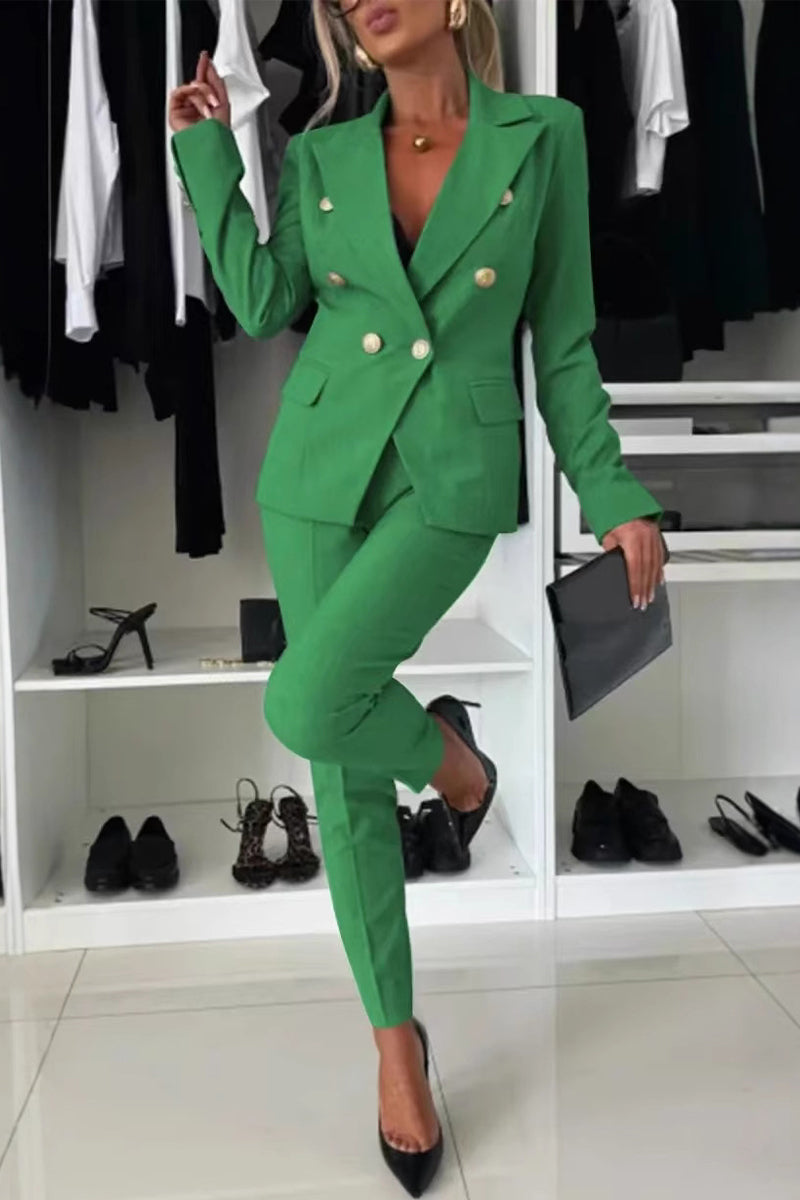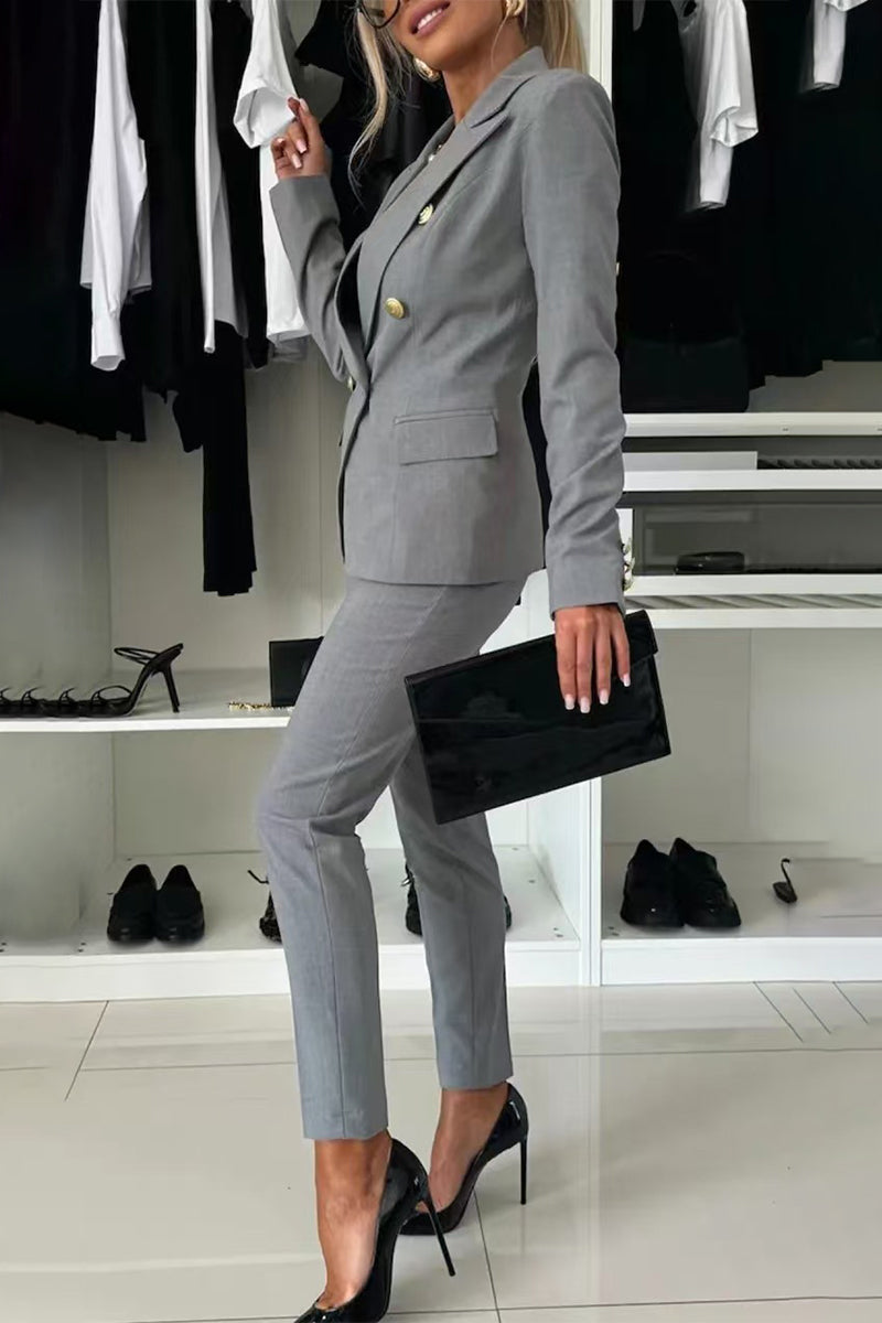 Casual Street Pocket Buttons Turn-back Collar Long Sleeve Two Pieces(8 Colors)