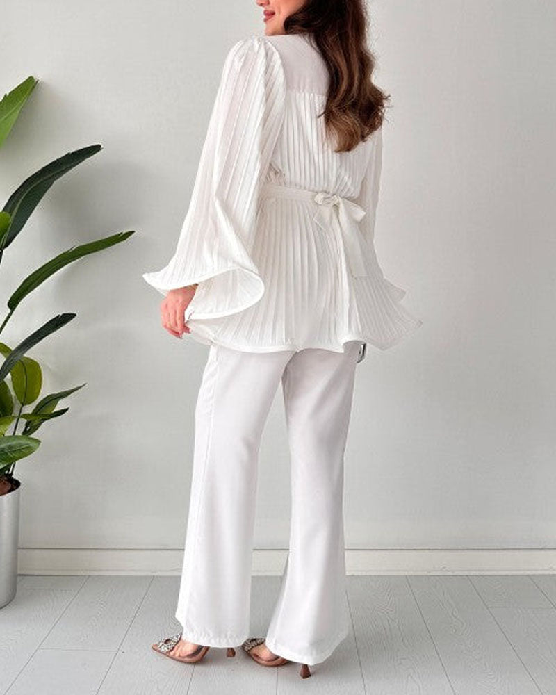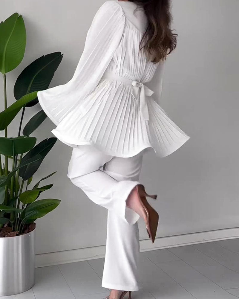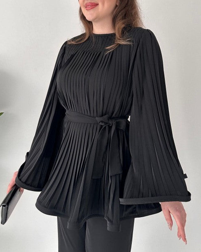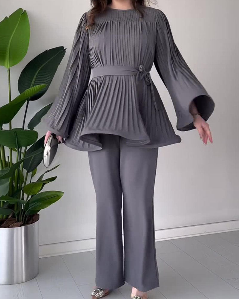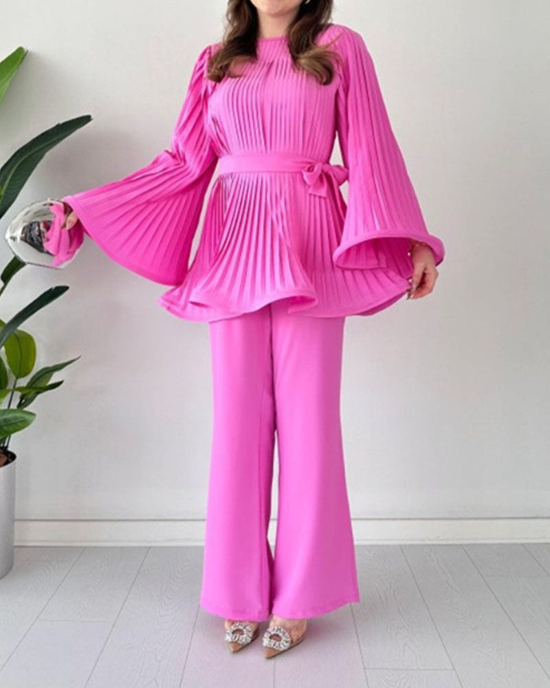 Fashion Round Neck Bat Sleeve Pleated Large Swing Top Suit