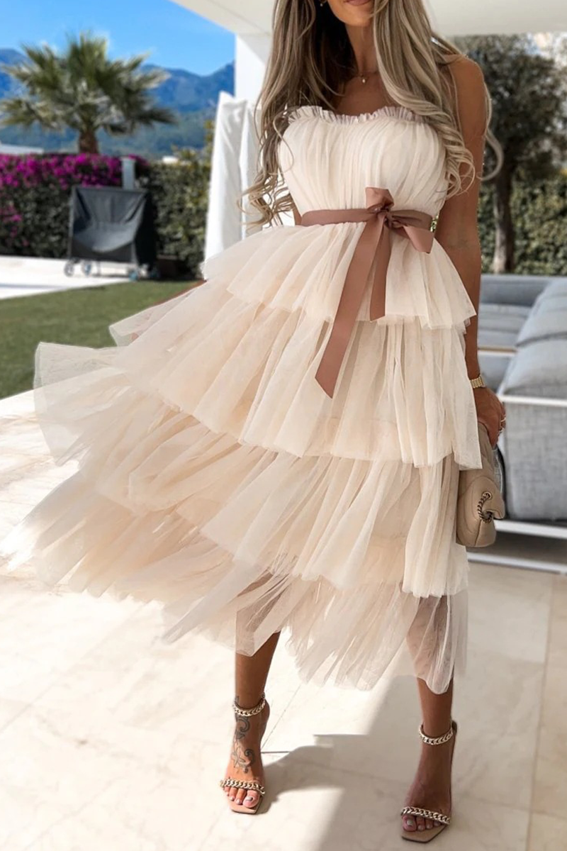 Fashion Solid Mesh Strapless Cake Skirt Dresses