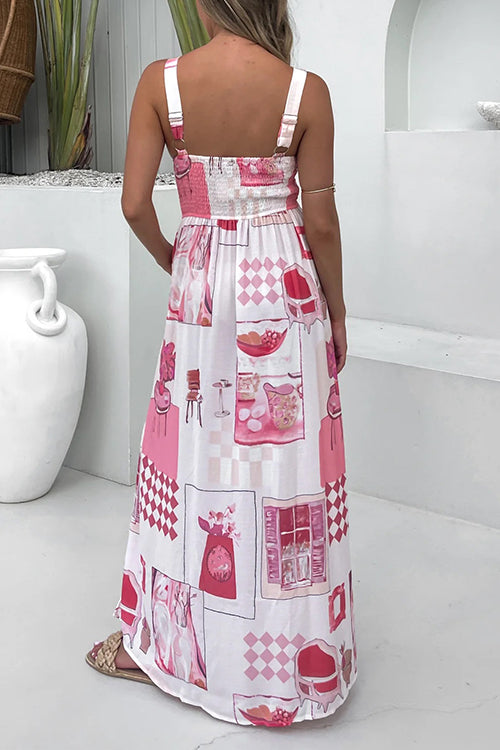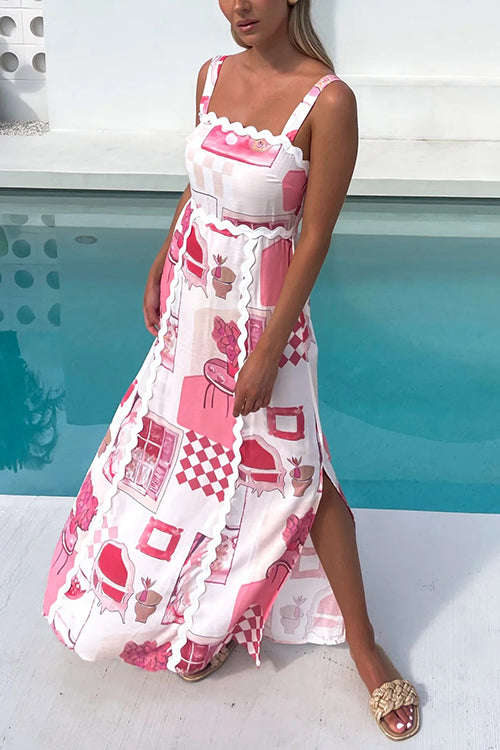 Ric Rac Trim Side Slit Printed Maxi Cami Dress