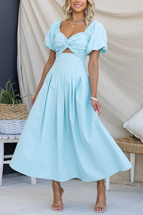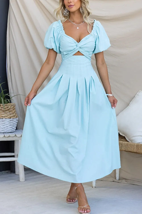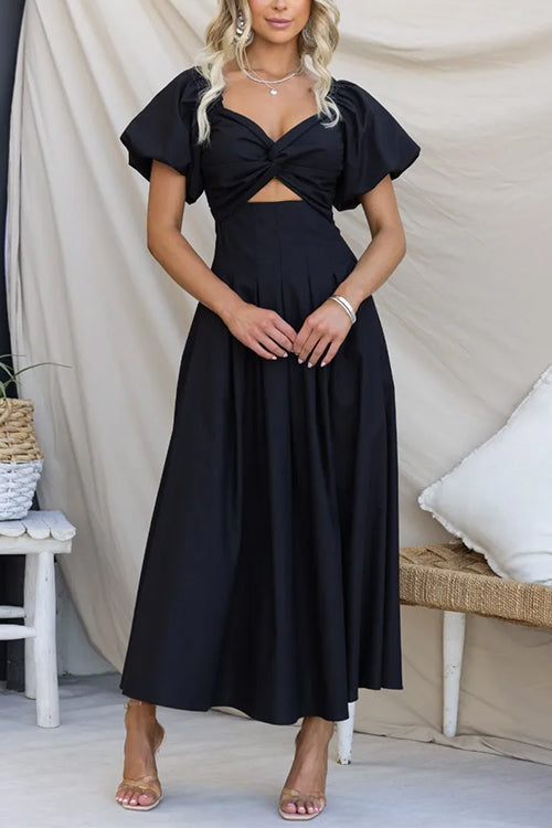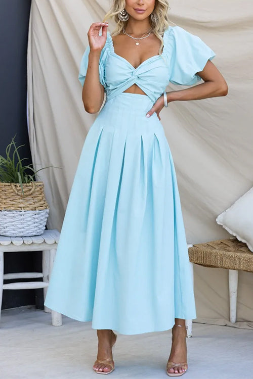 Twist Front Puff Sleeves Cut Out Pocketed Maxi Dress