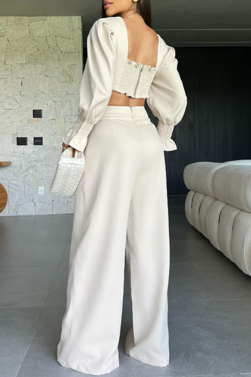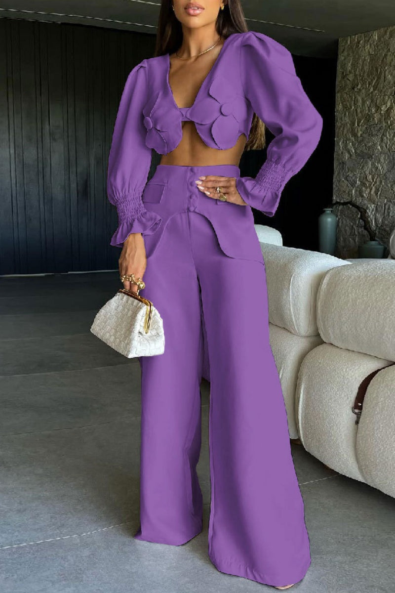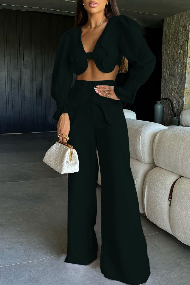 Sexy Casual Solid Color Patchwork Deep V Neck Long Sleeve Two Pieces