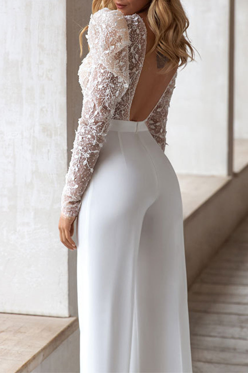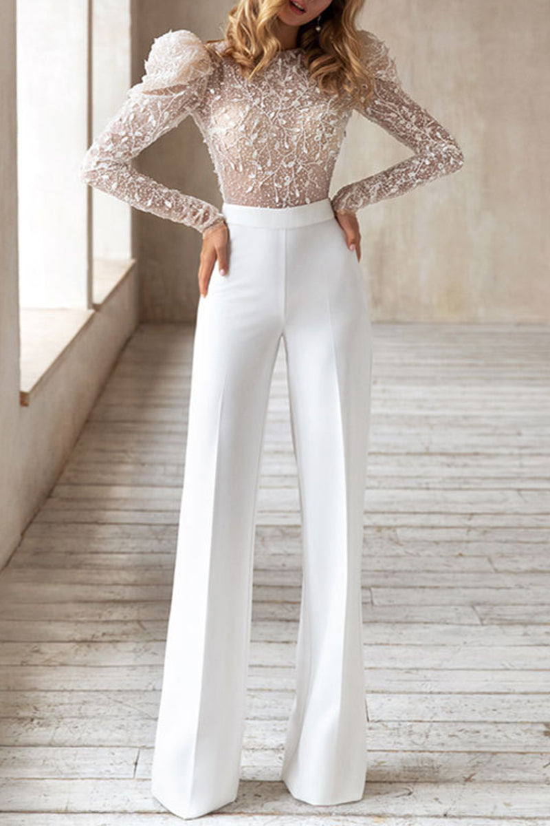 Sexy Elegant Solid Patchwork Backless O Neck Regular Jumpsuits
