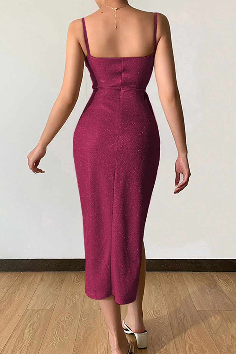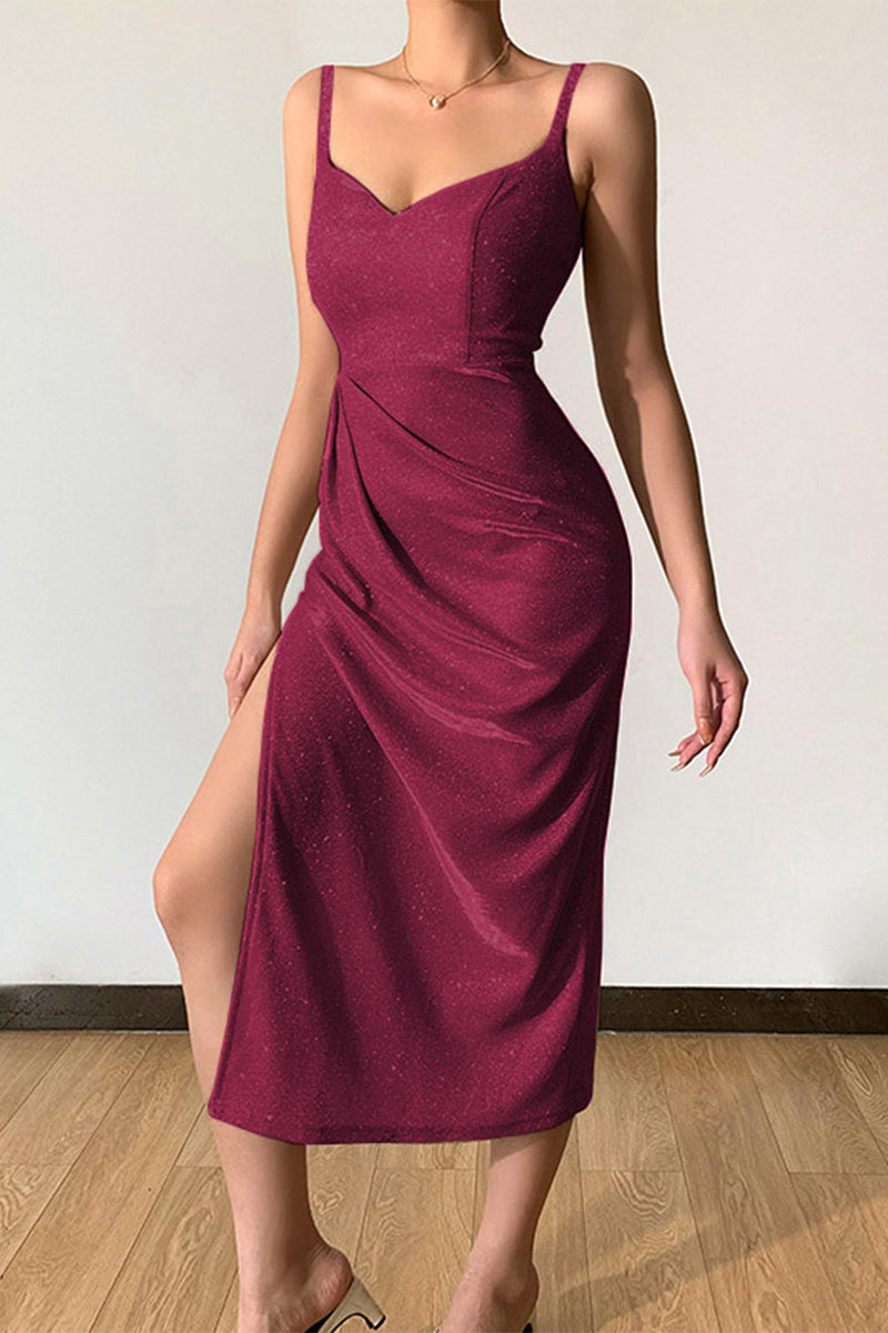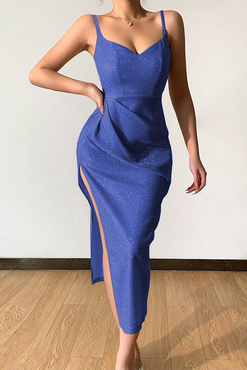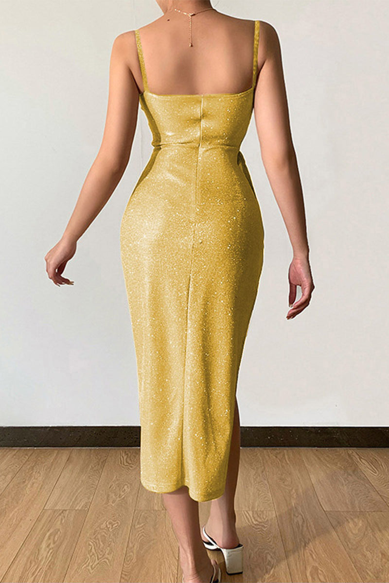 Sexy Elegant Solid Sequins Sequined V Neck Sling Dress Dresses