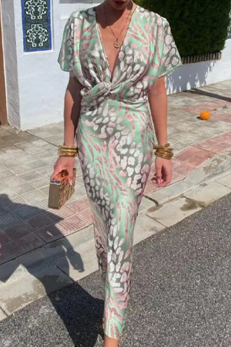 Sexy Floral Print Ruched V Neck A Line Dresses
