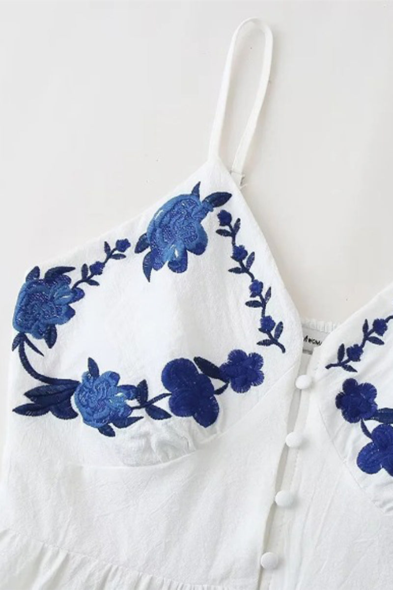 Sexy Flowers Embroidered Slit V Neck Sling Dresses