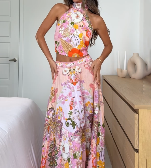 Passionate Floral Lace-Up Summer Two-pieces Set