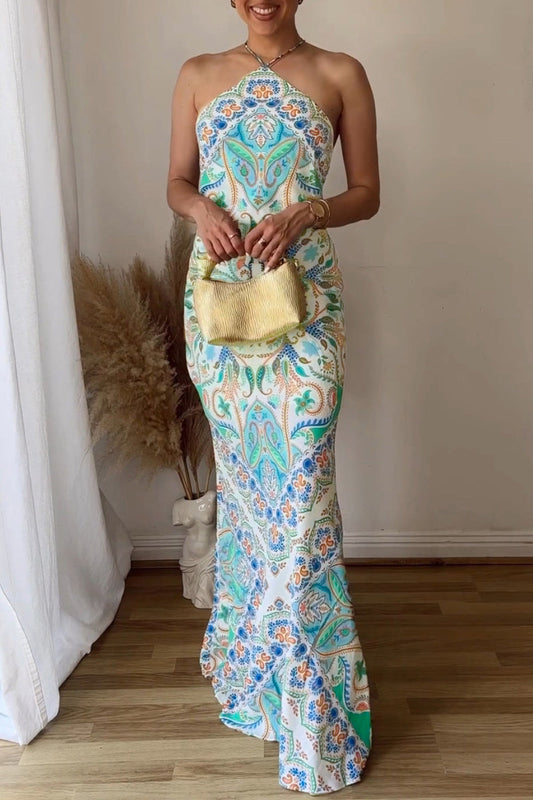 Bohemian Elegant Print Flowers Bandage Halter Vestidos estampados