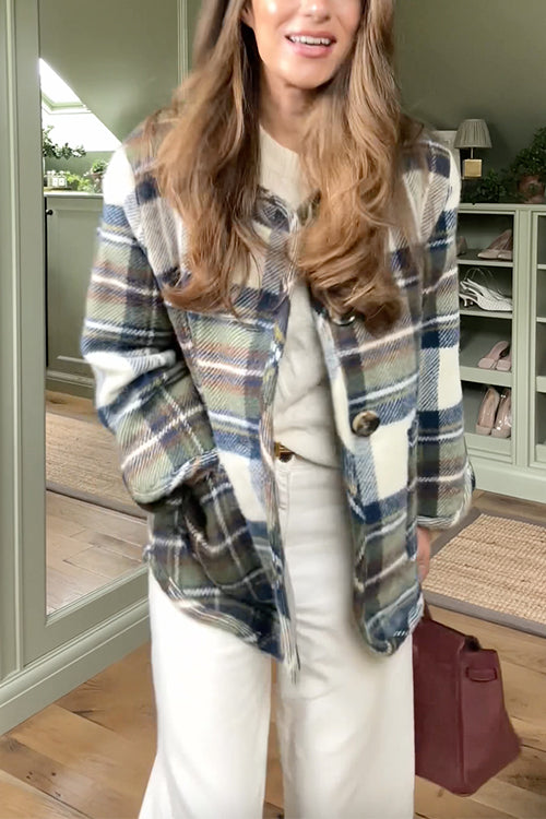 Rosiedress Casaco de camisa xadrez com botões e ombros caídos