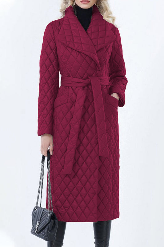 Casual elegante sólido com Cinto agasalhos com gola aberta