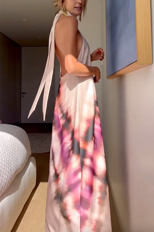 Neckholder-Rückenfreies, bedrucktes, fließendes Maxi-Ferienkleid