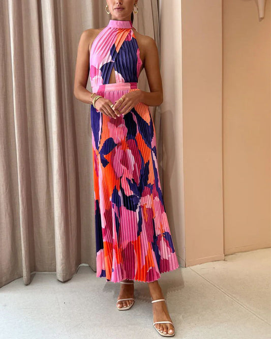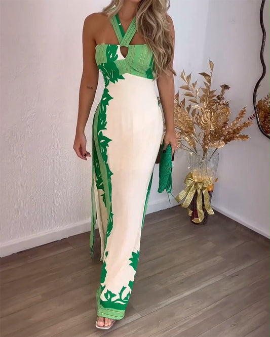 Rosiedress Halter Backless Impresso Swing Maxi Vestido de Férias