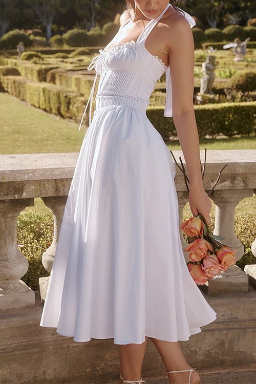 Neckholder-rückenfreies, schwingendes Midi-Sommerkleid mit Schnürung