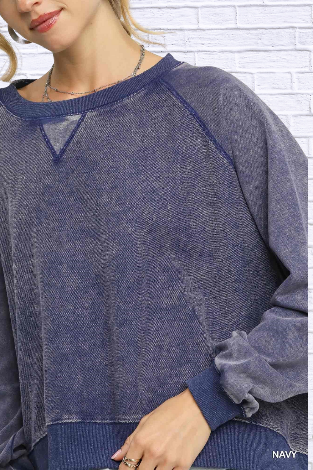 The Mineral Wash French Terry Sweatshirt is a cozy and stylish essential for your casual wardrobe. With its unique mineral wash finish, this sweatshirt offers a trendy and edgy look. Made from soft French terry fabric, it provides comfort and warmth for everyday wear. Pair this sweatshirt with jeans or leggings for a relaxed outfit, perfect for lounging at home or running errands. Stay comfortable and chic with this fashionable mineral wash sweatshirt.